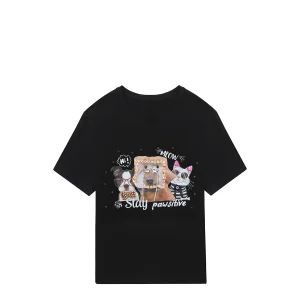 CAMISETA DE MODA CON CUELLO EN V (DREAM COMES TRUE NEGRO)