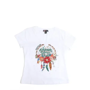 CAMISETA DE MODA CON CUELLO EN V (DREAM COMES TRUE BLANCO)