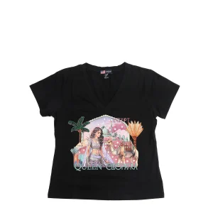 CAMISETA DE MODA CON CUELLO EN V (QUEEN CLEOPATRA NEGRO)