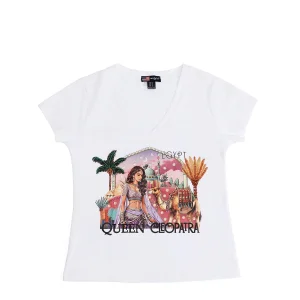 CAMISETA DE MODA CON CUELLO EN V (QUEEN CLEOPATRA BLANCO)