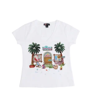 CAMISETA DE MODA CON CUELLO EN V (SUN & SAND)