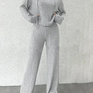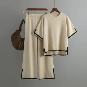 ALORA – Conjunto de sudadera de punto y pantalón ancho
