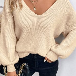 Blanche – Jersey de manga larga con cuello de pico y lazo en la espalda