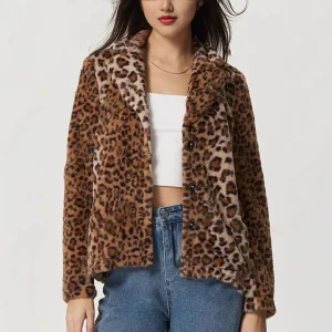 Abrigo corto mujer efecto piel vuelta con forro borrego – Cloe